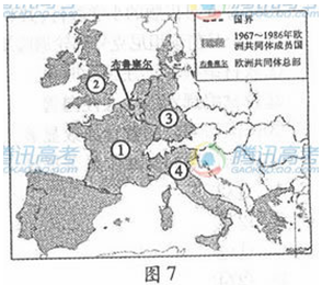 22.1967年,欧洲共同体正式成立时的六个国家,除荷兰、比利时、卢森堡三国外,还包括图7中的