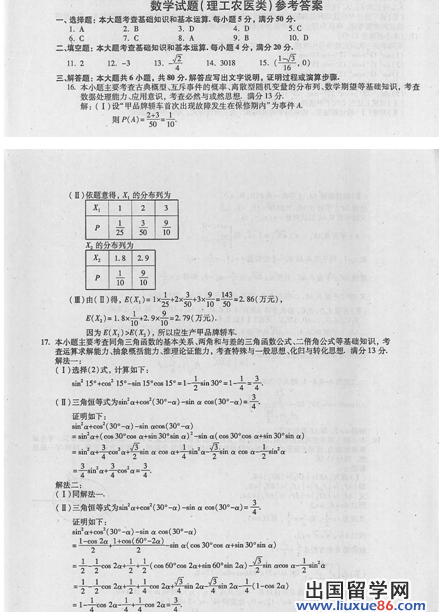2020全国卷1高考理科数学试卷及参考答案(图片版)