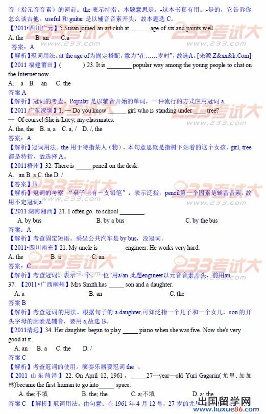 2013中考英语模拟冲刺试题(冠词练一)