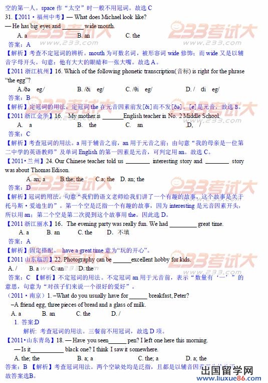 2013中考英语模拟冲刺试题(冠词练一)