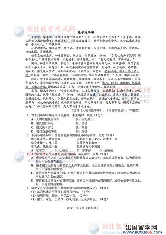 湖北高考语文试题
