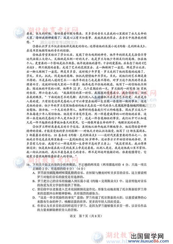 湖北高考语文试题