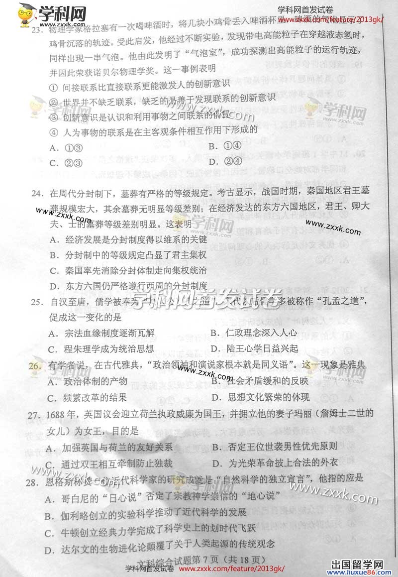 2013年高考文综