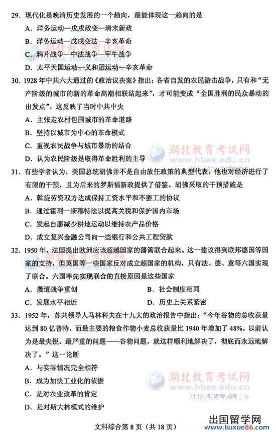 湖北高考文综