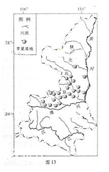 35.(35分)图13为陕西省主要苹果基地分布图。阅读图文资料,完成下列各题。