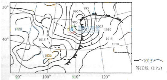 34.(21分)图12为2001年4月6日17时某区域地面天气图,虚线范围内为图示天气系统引发的某种气象灾害实时分布图。此前图示区域大部分地区表土解冻,地表干燥。阅读图文资料,完成下列各题。