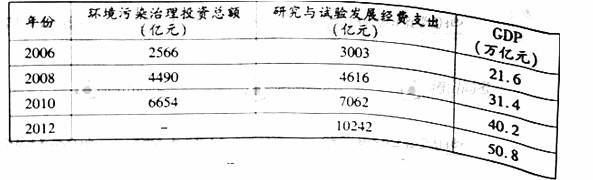 2006-2012年我国环境治理、科研投入和经济成就