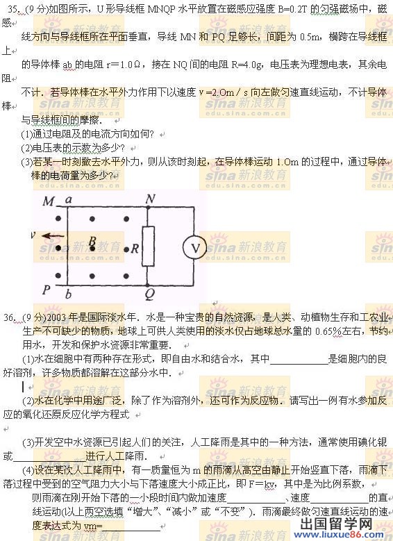 2004江苏高考理科综合真题试卷