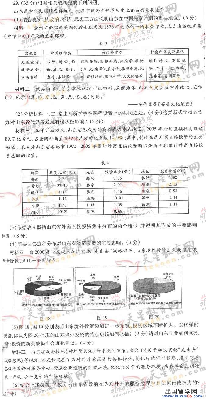 山东高考文综