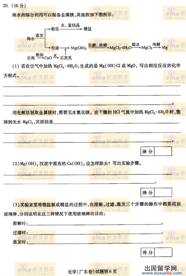 2006高考化学真题和参考答案