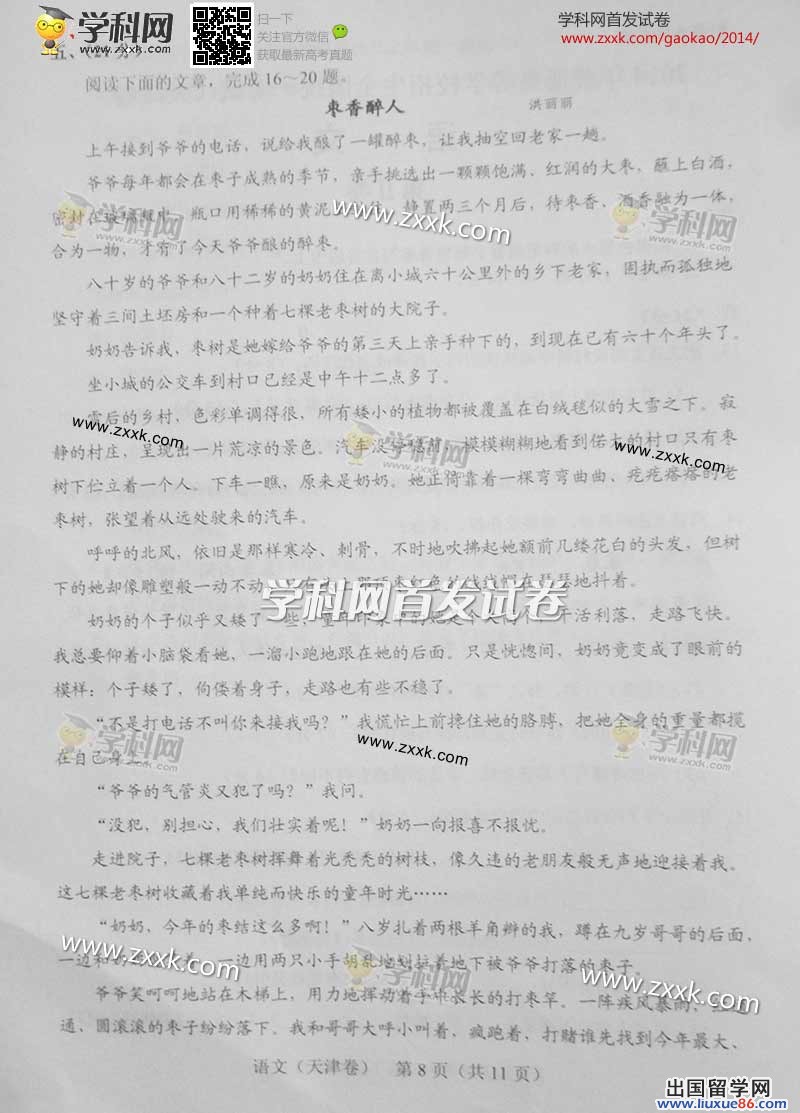 2014天津语文高考