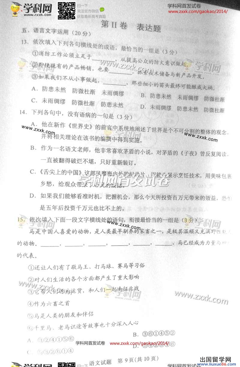 估分:2014甘肃语文真题及答案