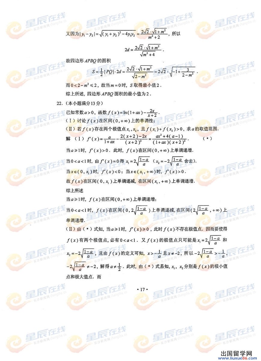 湖南高考数学答案
