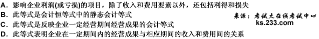 40、“收入-费用=利润(或亏损)”,关于此等式说法不正确的是( )。