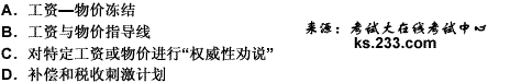 46、针对某种具体的物价与工资形势,由政府出面施加压力来扭转局势的收入政策是( )。