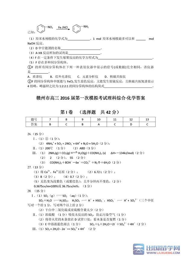 2016赣州一模化学试题及答案