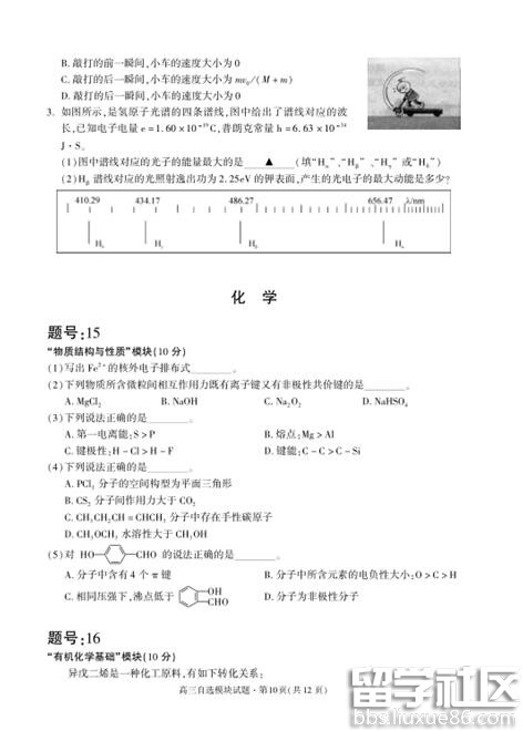 2020江苏高考物理、生物、化学试卷及答案(图文版)
