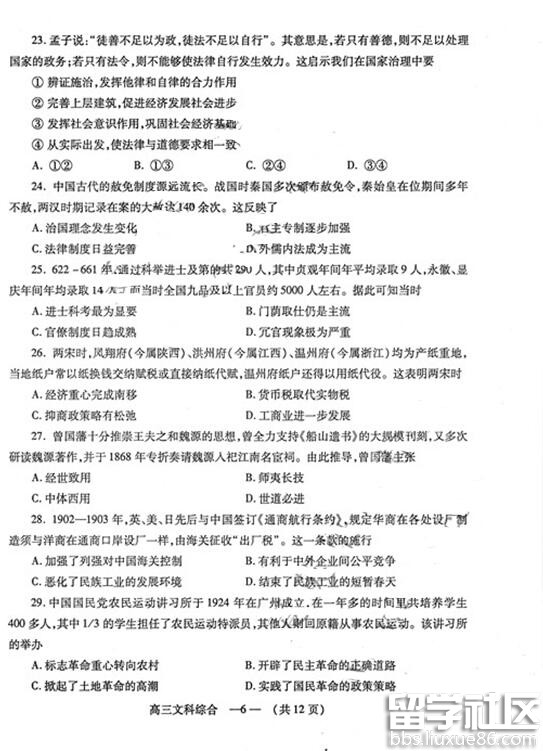 2017福州质检历史试题及答案