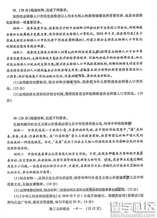 2017福州质检历史试题及答案