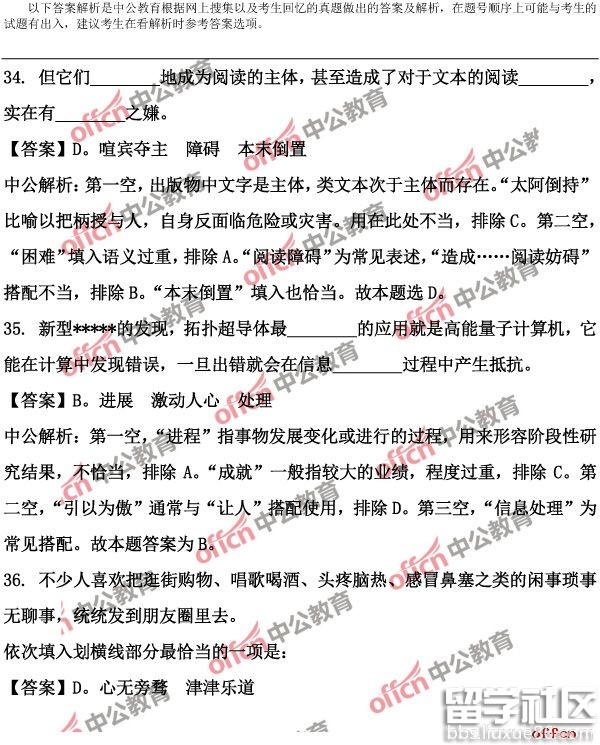 公务员行测答案解析