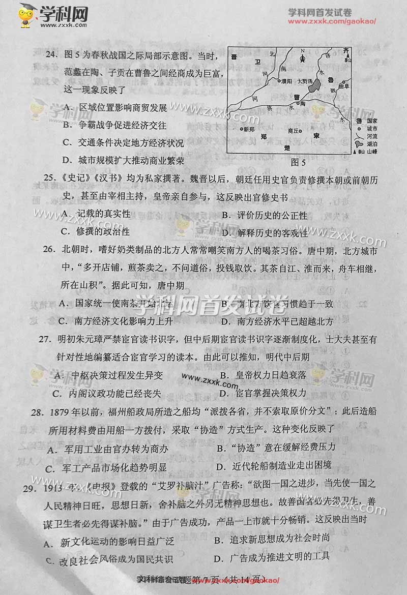 河南高考文科综合试卷
