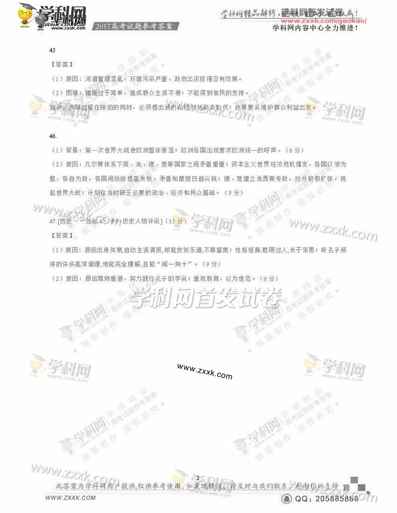 2017年青海高考文综真题附答案(清晰版)