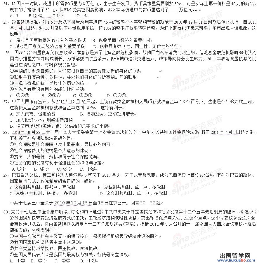 2012年05月23日 亲,很高兴访问《河北省徐水县2011届高三上学期期末统一考试文综试题及答案》一文,也欢迎您访问出国留学(liuxuequn.com)的高考频道,为您精心准备了2011高考文综日常练习的相关模拟考试试题内容!同时,我们正在加紧建设高考频道,我们全体编辑的努力全是为了您,希望您能在本次高考中能获得好的名次,以及考上满意的大学,也希望我们准备的《河北省徐水县2011届高三上学期期末统一考试文综试题及答案》内容能帮助到您。在即将到来的高考上助您一臂之力!加油,童鞋! 【出国留学liuxuequn.com提供正确答案】 河北高考语文试题 河北高考数学试题 河北高考英语试题 河北高考理综试题 河北高考文综试题 河北高考语文答案 河北高考数学答案 河北高考英语答案 河北高考理综答案 河北高考文综答案