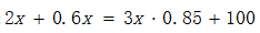 (标准)某夫妻要在假期带小孩外出旅游。当地有甲、乙两家旅行社,旅游定价都一样,但对家庭旅游都有优惠。甲旅行社表示小孩可打六折;乙旅行社表示全家可打八五折。经核算,乙旅行社要便宜100元,那么成人旅游定价是多少?